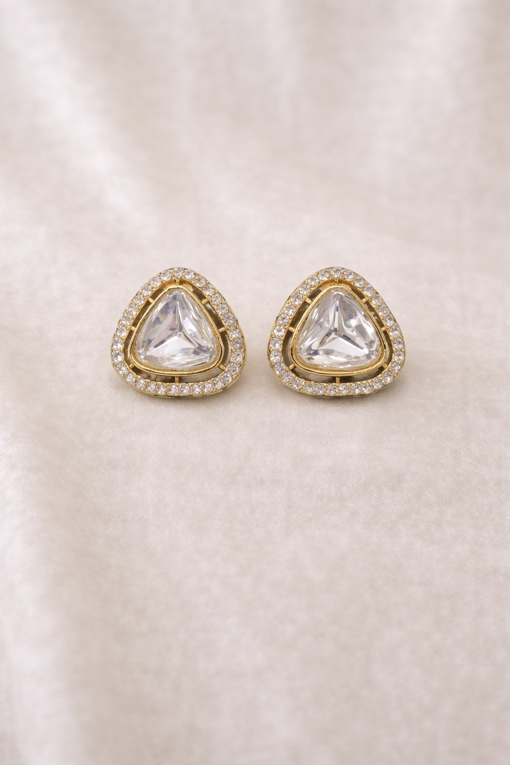 Graceful long tassel earrings with soft stones edged in subtle sparkle and cascading gold bead chains—light, elegant, and perfect for festive or daytime ethnic wear.